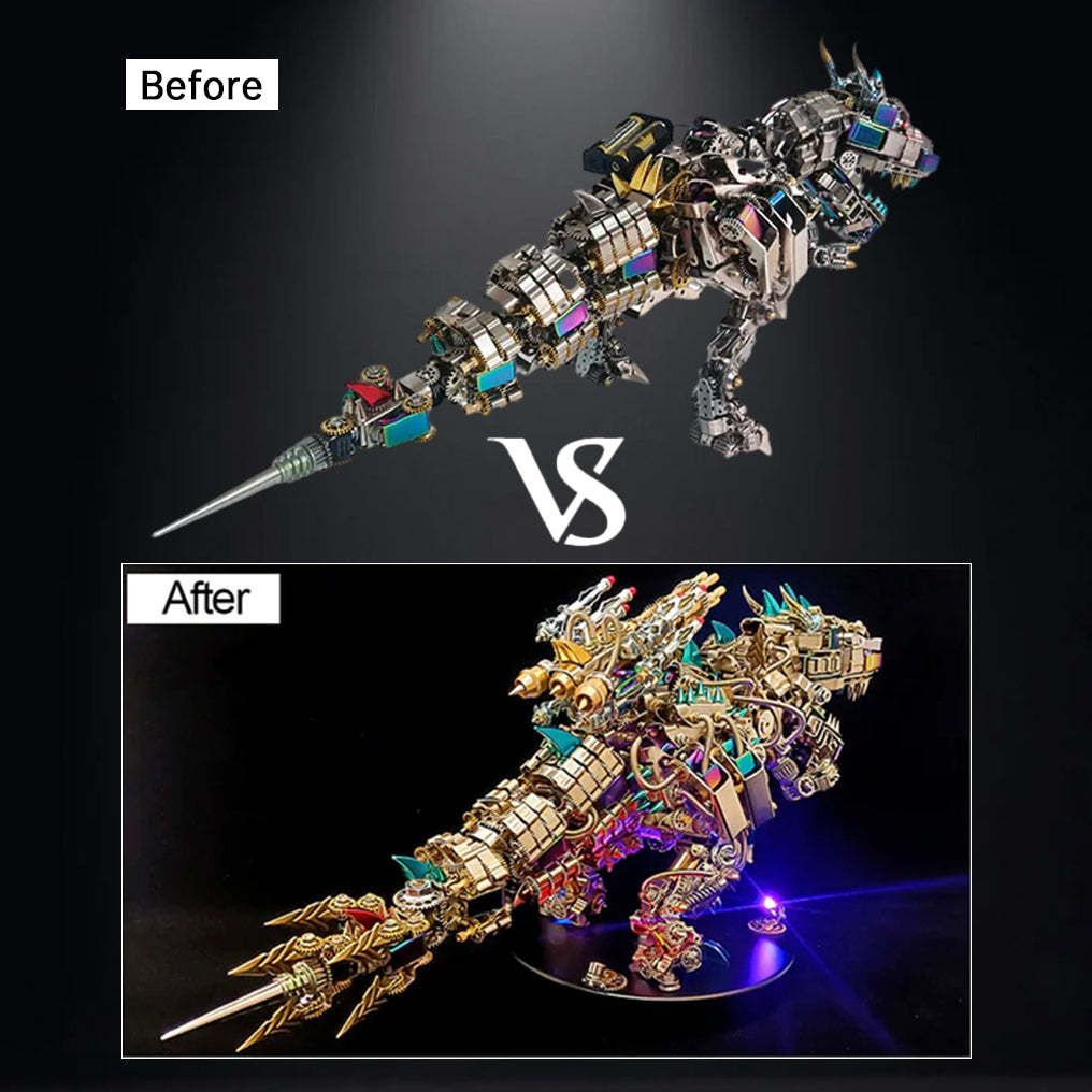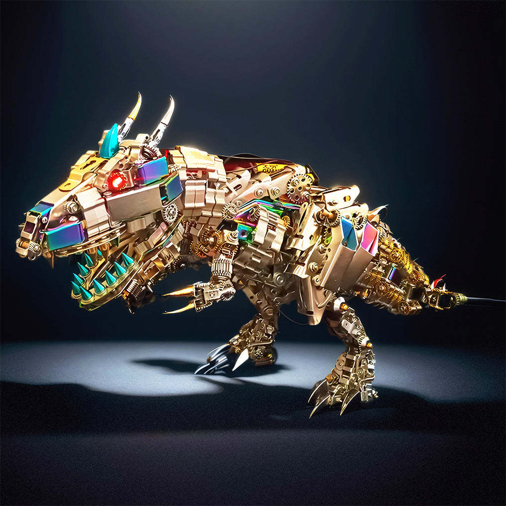 - Steampunk Style Model:Explore the countless opportunities for construction with this DIY 3D Mechanical Rex Dinosaur Metal Model Puzzles Building Block Set Toys - 2500PCS+55cm Height. Made from high-quality metals such as stainless steel, aluminum, and copper, this set allows for precise cutting and easy maintenance. Not only does it offer hours of hands-on entertainment, but it also fosters the development of problem-solving and critical thinking skills. Unleash your ingenuity and enter the thrilling realm of 3D modeling with this 3D Tyrannosaurus kit!