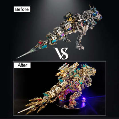 - Know More About Tyrannosaurus:Join the epic fifth borderless war with the tyrannosaurus Rex clan in the mechanical realm. This 55cm mechanical Tyrannosaurus Rex boasts a stunning machinery texture, vibrant components, and an impressive structure and color scheme, making it a captivating addition to your desktop decor. Perfect for entertaining friends and a must-have for dinosaur and metal enthusiasts alike - this metal toy is sure to become a sensation.